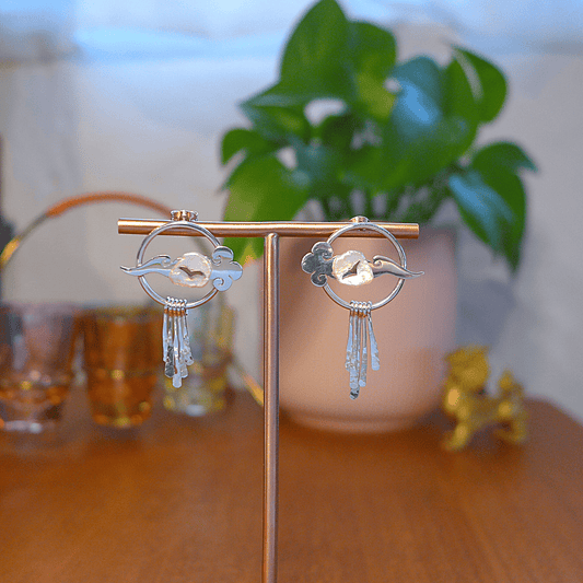Lucky Cloud ~ Sterling Silver Drop Earrings with Raindrops