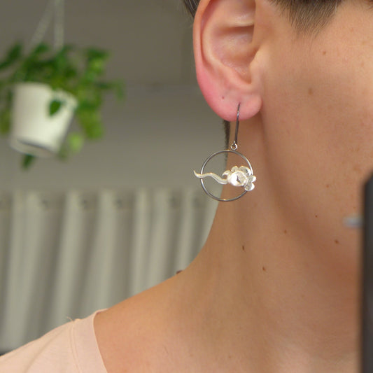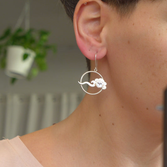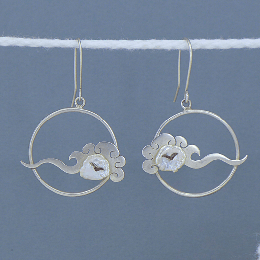 Cloud stud and drop earrings hand-crafted from recycled silver. Hand-made in Hong Kong
